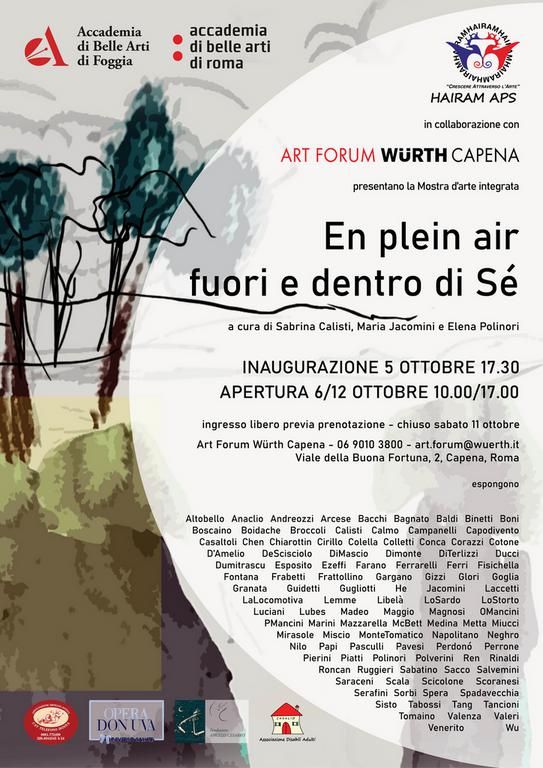 Uno dei nostri intenti principali è quello di cercare spazi della collettività che siano riconosciuti socialmente e culturalmente che possano rappresentare una cornice ai percorsi di arteterapia delle persone con disabilità e svantaggio. Finora l’associazione ha avuto l’opportunità di collaborare con l’Art -Forum Würth di Capena per rendere pubbliche le opere prodotte nei nostri laboratori e far partecipare anche artisti interessati che operano nel Lazio.